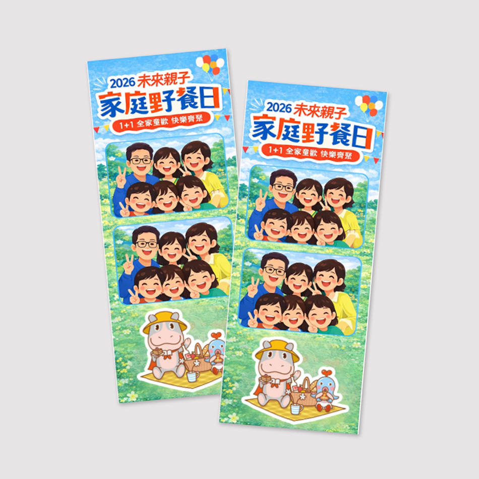 走進專屬野餐日主視覺拍貼框,和家人一起留下今天最開心的模樣。完成報名的家庭即可免費兌換一張拍貼,把歡笑、互動與回憶通通帶回家,為今年的野餐日留下一張值得珍藏的紀念照。