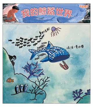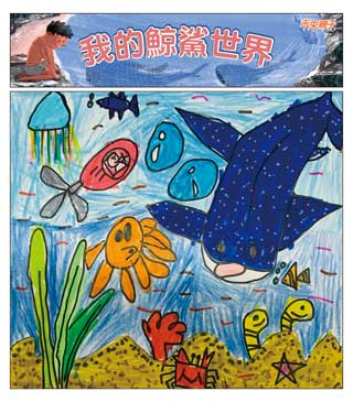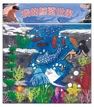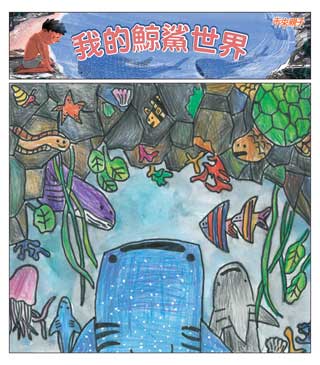 - 作品主題:以「我的鯨鯊世界」為主題,畫出你心目中的鯨鯊模樣,可以自由發揮創意表現,並想像鯨鯊可能在海裡遇到怎樣的海洋生物?或是在海裡展開怎樣的奇幻冒險旅程!