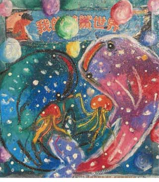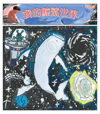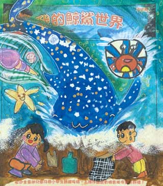 由海洋保育署出版的《海邊的星星巨人》繪本不僅帶領孩子認識鯨鯊,也特地舉辦繪畫徵件比賽,以「我的鯨鯊世界」為主題,邀請孩子們用畫筆與色彩,描繪出心中獨一無二的鯨鯊樣貌。