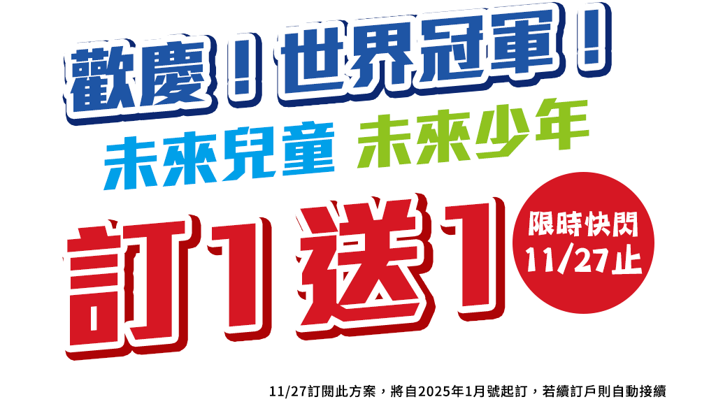 - 此活動至2024年11月27日23:59止,僅限台、澎、金、馬地區訂閱,如需掛號寄送,郵資另計。