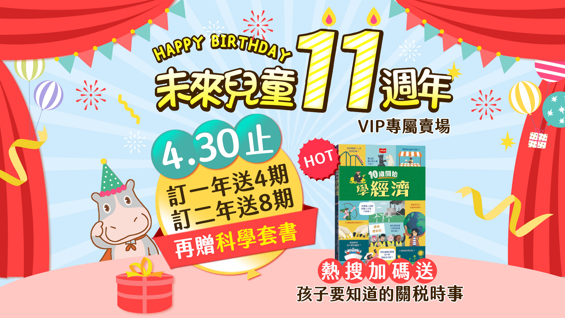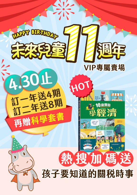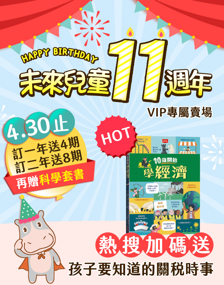 未來兒童11週年慶VIP優惠至2025年4月30日止,僅限台、澎、金、馬地區訂閱,如需掛號寄送,郵資另計。